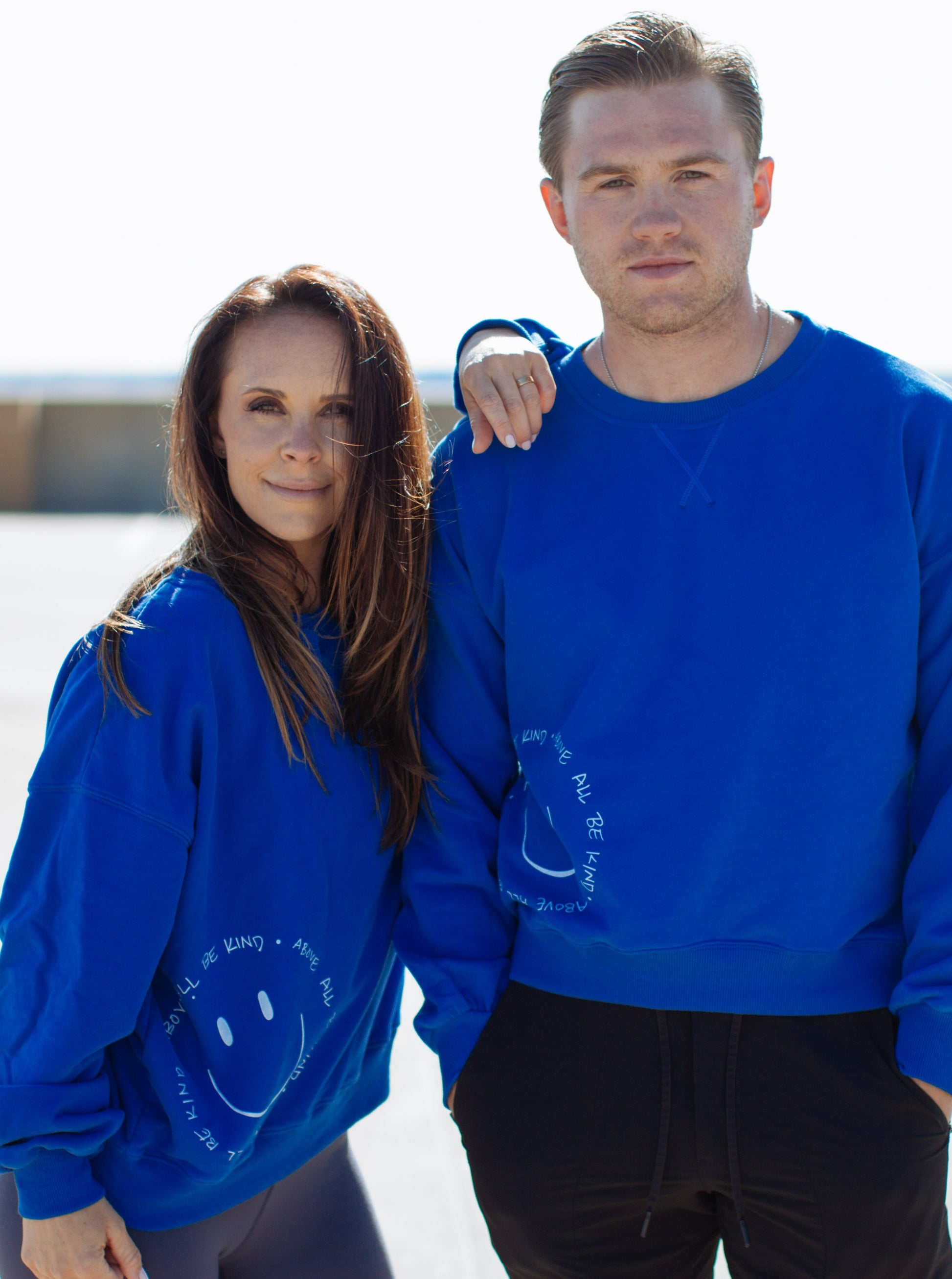 This cozy layer is oversized and unisex - something you will live in! our signature "be kind" hand-drawn smile with your simple reminder to "above all be kind" is placed at an angle on the right hip. Our trademarked "sweat love soul" logo is on the back.