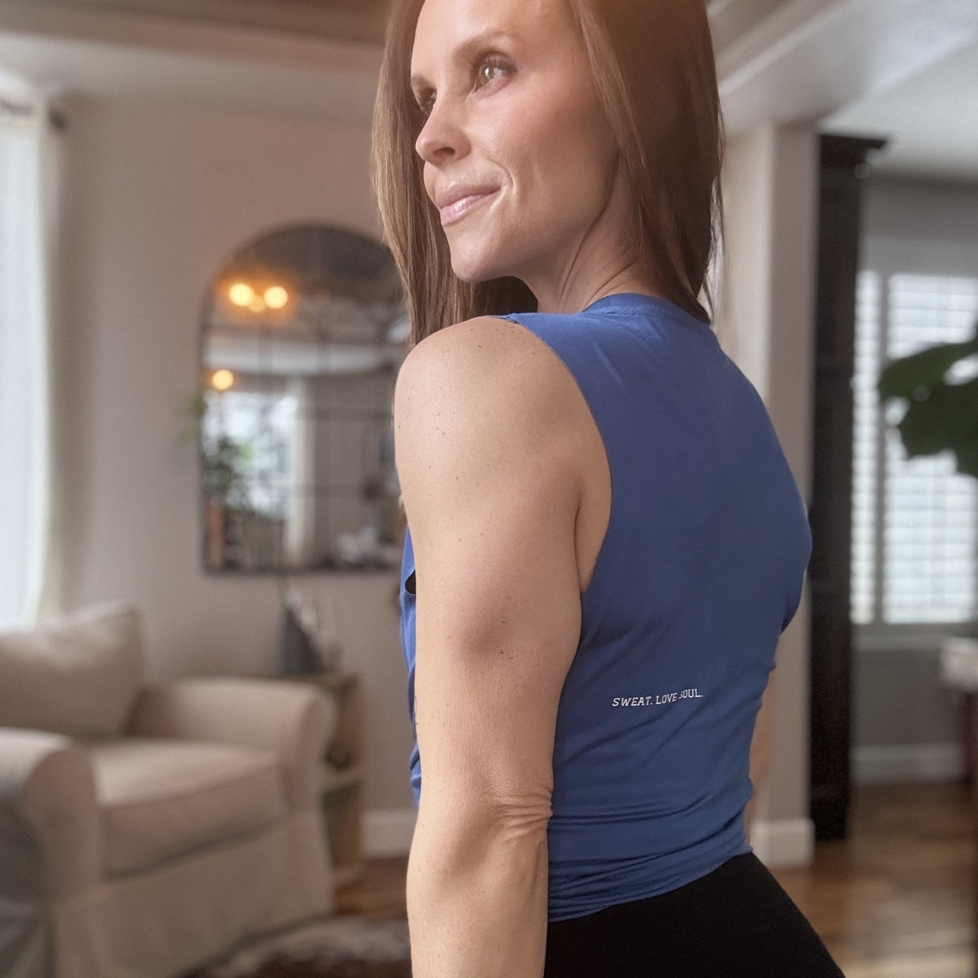 A relaxed fit muscle tank with raw edge arm holes will give you ultimate comfort. The modal cotton will keep you smelling good even during the sweatiest of workouts! The bright rainbow patch found on the left chest is your simple reminder that, no matter how dark things may get, there is always beauty to be found. Sweat.Love.Soul is placed on the back in a bright white. Â