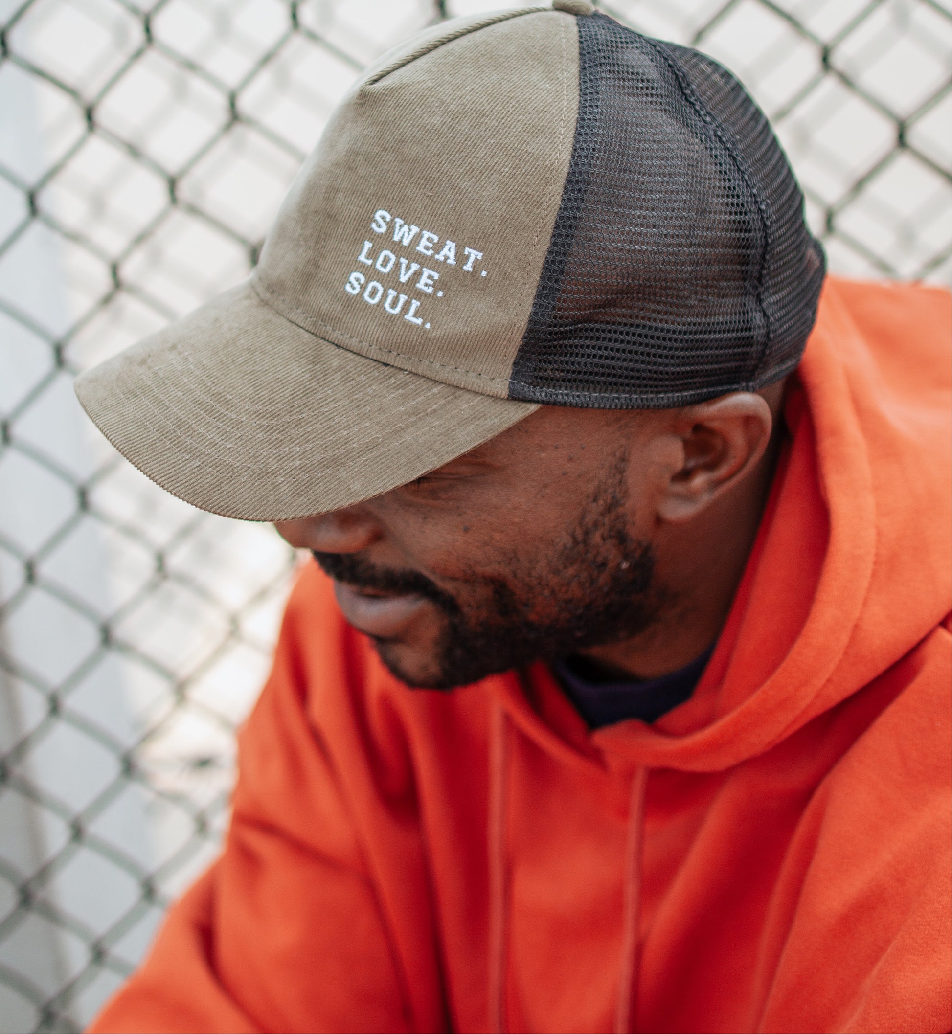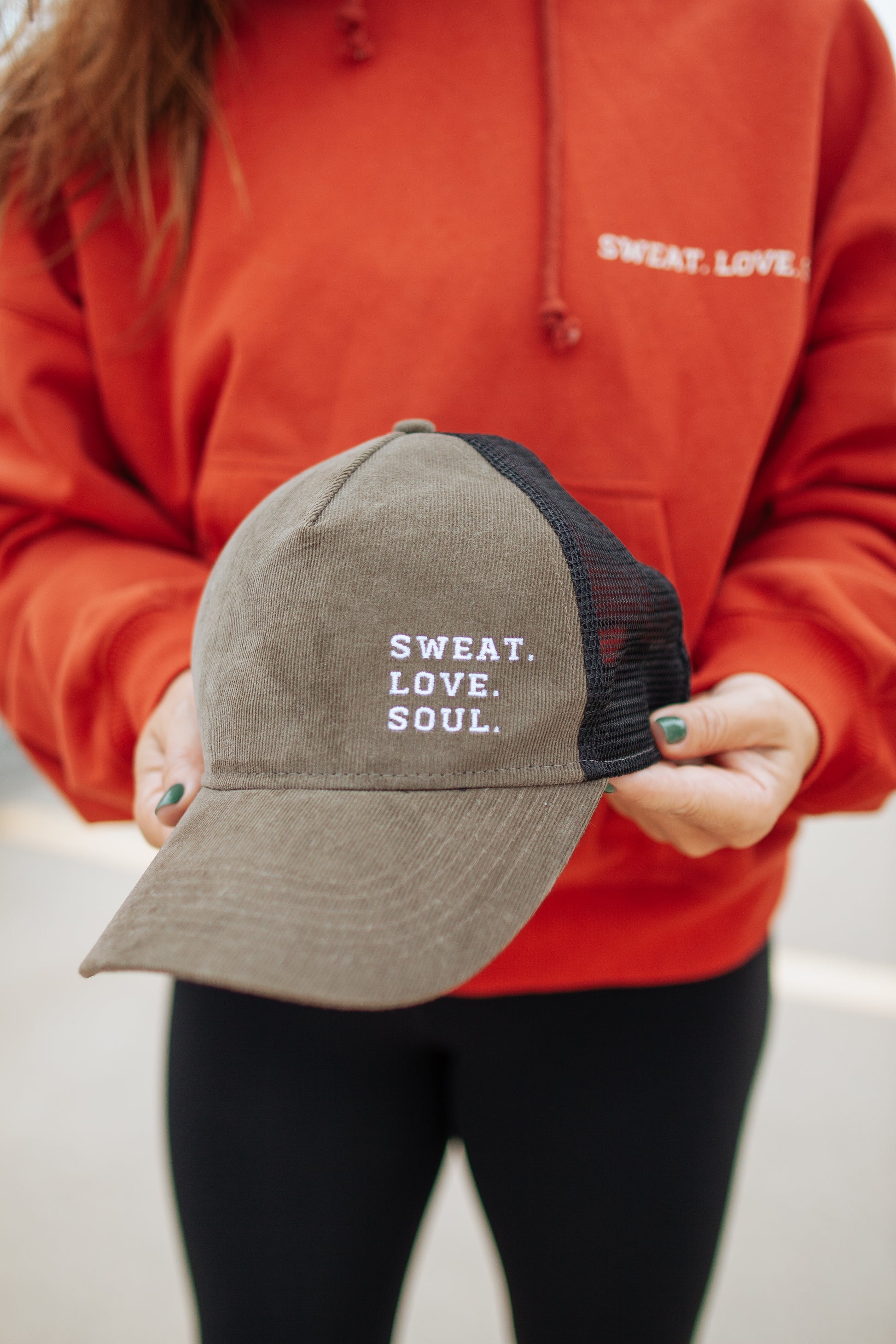 This Olive Green UNISEX corduroy/ black mesh trucker hat is a must have. With an adjustable back, it can be worn by all!